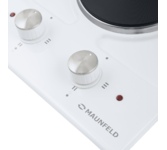 Maunfeld EEHE.32.4B — это электрическая варочная панель типа «Домино» шириной 30 см. Элементы управления — цельнометаллические поворотные ручки серебристого цвета. Конфорки чугунные. Особенность модели — четыре ножки-опоры, которые позволяют использовать данную варочную поверхность как отдельностоящую. Ключевые преимущества: Чугунные конфорки быстрого нагрева Высокопрочные термостойкие пластиковые ручки Поверхность из эмалированного металла