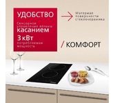 Встраиваемая электрическая варочная поверхность, 45 см , 3 зоны нагрева, зона расширения нагрева, размер 450*520 мм, 5,8 кВт, китайская стеклокерамика, скошенный край отсутвует, сенсорная панель управления - слайдер, красная подсветка, таймер 99 мин, индикация остаточного тепла, защитное автоотключение, блокировка от детей, функция бустер, функция паузы и функция поддержания тепла передняя левая φ180 мм, 1,8/2,3 кВт задняя левая φ160 мм, 1,2/1,5 кВт передняя правая φ180 мм, 1,8/2,3 кВт
