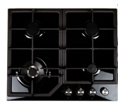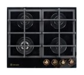 Размеры 61х51х9,7см.Закаленное стекло, черный, чугунная решетка, автоматический розжиг, газ-контроль, 4 газовые конфорки, WOK-конфорка, ширина варочной поверхности 60см, Турция