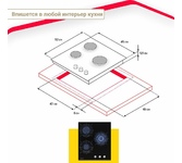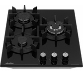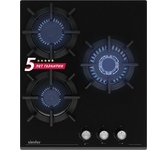 Общие данные: Габариты: -х44х52 см Габариты ниши для встраивания: -х41х49 см Рабочая поверхность: закаленное стекло Количество конфорок: 3 газовые Мощность: 1 х конфорка повышенной мощности 3000 Вт. 1 х стандартная конфорка 1750 Вт. 1 x экономичная конфорка 1000 Вт. Автоматический розжиг Управление и функции: Фронтальная панель управления Дополнительная информация: Индивидуальные чугунные решётки Жиклёры для баллонного газа
