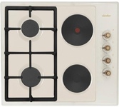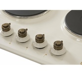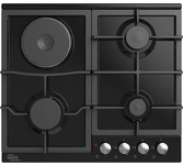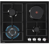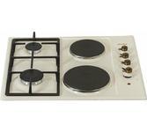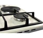Общие данные: Габариты: -х59х52 см Габариты ниши для встраивания: -х56х49 см Рабочий стол: эмаль Количество конфорок: 2 газовые и 2 традиционные Мощность: 1 х конфорка повышенной мощности 3000 Вт 1 х стандартная конфорка 1750 Вт 1 x электрическая конфорка 1000 Вт 1 х электрическая конфорка 2000 Вт Автоматический розжиг Газ контроль Управление и функции: Поворотные переключатели Положение панели управления: сбоку Дополнительная информация: Составные эмалированные решётки Жиклёры для баллонного газа