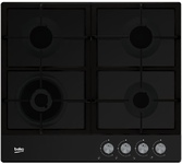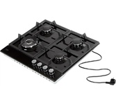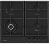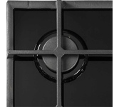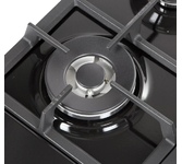 Газовая варочная поверхность (газ на металле), 4 зоны, одна зона с двойным уровнем пламени; автоподжиг, газ-контроль, чугунные решетки, цвет: черный