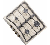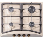 Газовая 4-х конфорочная, газ-контроль, электро.розжиг в ручке, эмаль цвета "топлен.молоко", ручки "блестящее золото", чугунные решетки, размер продукта 58x50x8,6см