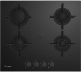 Газовая варочная поверхность (газ на стекле) 4 зоны, автоподжиг, газ-контроль, чугунные держатели для посуды, цвет: черный