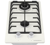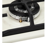 Газовая варочная поверхность, ширина 60 см, 4 газовые конфорки, общая мощность 7,3 кВт, диаметр конфорок 50 мм , 2Х70 мм и 80 мм, мощность малой конфорки 1 кВт, мощность средней конфорки 1,7 кВт, мощность большой конфорки 2,9 кВт, фронтальные поворотные регуляторы, электроподжиг, чугунные решетки, материал поверхности - закаленное стекло толщина 8мм, цвет - белый. В комплекте переходники на сжиженый газ. Длина кабеля питания, 1,2 м