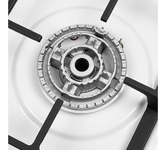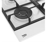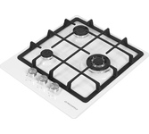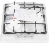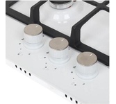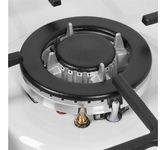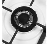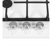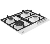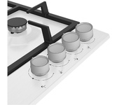 Газовая варочная поверхность (газ на металле), 4 зоны, одна зона с двойным уровнем пламени; автоподжиг, газ-контроль, чугунные решетки, цвет: белый