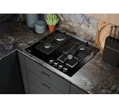 "• Независимая газовая варочная поверхность 70 см. • Чугунная решетка • Кол-во конфорок – 5 (1 WOK конфорка повышенной мощности) • Газконтроль • Автоматический розжиг • Цвет – черный"