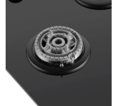 Газовая варочная панель Haier HHQ-M64CTX отличается лаконичным дизайном и практичной конструкцией. Модель с основанием из нержавеющей стали, чугунными решетками и металлическими регуляторами имеет увеличенное расстояние между конфорками, что обеспечивает комфортное приготовление нескольких блюд одновременно. Для работы с мелкой посудой и улучшения распределения тепла в комплект включена дополнительная подставка. Помимо конфорок разного размера, панель оснащена мощной трехконтурной конфоркой (3,8 кВт), которая идеально подходит для объемной посуды — больших кастрюль и сковород. Эта конфорка, также известная как ВОК, расположена спереди, с противоположной от регуляторов стороны. Каждая горелка оборудована электроподжигом для розжига без спичек. Функция «газ-контроль» обеспечивает безопасность, автоматически отключая подачу газа при затухании пламени. Специальная форма основания с углублениями предотвращает растекание пролитой жидкости, а гладкая поверхность облегчает очистку. Haier HHQ-M64CTX — это продуманное