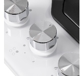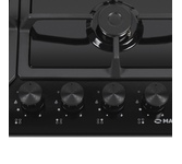 Газовая варочная панель Haier HHQ-M64CTQX сочетает лаконичный дизайн и практичную конструкцию. Основание из нержавеющей стали, чугунные решетки и металлические регуляторы подчеркивают ее надежность. Увеличенное расстояние между конфорками позволяет с комфортом готовить несколько блюд одновременно. Для использования посуды малого диаметра и более равномерного нагрева в комплект входит дополнительная подставка. Помимо стандартных конфорок разного размера, панель оборудована мощной трехконтурной горелкой (4 кВт), идеальной для объемных кастрюль и сковород. Эта ВОК-конфорка расположена на переднем крае панели, с противоположной стороны от регуляторов. Благодаря функции Easy-Start розжиг каждой конфорки происходит мгновенно. Это исключает неудобную необходимость удерживать регулятор нажатым, характерную для обычных плит. Точная 9-уровневая регулировка подачи газа обеспечивает оптимальный контроль над процессом приготовления. Для безопасности предусмотрена система «газ-контроль», автоматически отключающая подачу га