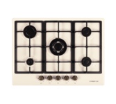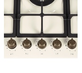 Газовая варочная панель Maunfeld EGHE.75.33CBG2.R/G выполнена в цвете «слоновая кость». Модель управляется цельнометаллическими поворотными переключателями бронзового цвета. Прибор относится к коллекции «Retro». 5 конфорок разной степени мощности, включая WOK-горелку с тройным пламенем, оснащены газ-контролем и электроподжигом. Есть возможность работы от магистрального газа и газа в баллоне (жиклеры идут в комплекте). Ключевые преимущества: Электроподжиг Газ-контроль Итальянские горелки «SABAF»