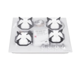 (ВхШхГ)13.6 х 60 х 52см.Материал варочной поверхности закаленное стекло Цвет фурнитуры белый Держатели для посуды чугунные Количество держателей для посуды 2.Управление механическое Переключатели поворотные ФУНКЦИИ Электроподжиг автоматический Газ-контроль Вид и давление газа природный газ G20/20