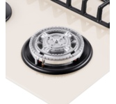 Газовая варочная панель Maunfeld EGHG.64.63CBG/G бежевого цвета. Поверхность из закаленного стекла ударопрочная и легко очищается от загрязнений. Две чугунные решетки с крестообразными соединениями позволяют ставить посуду любого диаметра. WOK конфорка повышенной мощности создает двойное пламя и уменьшает время разогревания или кипячения. Ключевые преимущества: Поверхность из закаленного стекла Чугунные решетки WOK конфорка