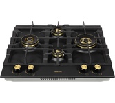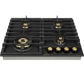 Латунные энергоэффективные конфорки; электроподжиг; ГАЗ-контроль, решетка: чугунная; WOK конфорка; цвет поверхности: матовый черный; цвет ручек: черный+бронза; Ширина (см) 58,4; Глубина (см) 51;