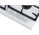 ШхГхВ: 58,4х51х10 см; электроподжиг; решетка: чугунная; WOK конфорка; цвет поверхности: белое закаленное стекло; цвет ручек: серебристые