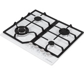 Тип панели: газовая. Установка рабочей поверхности: независимая. Материал поверхности: закаленное стекло. Материал решетки: чугун. Суммарная мощность газовых конфорок: 8. Минимальная толщина столешницы: 30. Цвет: белый. Конфорка ВОК: есть. Вес (нетто): 14.1. Газ-контроль: есть. Габариты упаковки (ед) ДхШхВ: 0.641x0.57x0.17. Вес упаковки (ед): 16.1. Подключение к электросети: кабель с вилкой. Общее количество конфорок: 4. Расположение панели управления: спереди/сбоку. Скошенные края поверхности: Да. Управление: механическое. Электроподжиг: в ручке (автоматический). Гарантия: 24 мес.. Левая ближняя конфорка: газовая, мощность 3.4 кВт, размер 128 мм, трехконтурная. Левая дальняя конфорка: газовая, мощность 1.8 кВт, размер 48 мм, одноконтурная. Размеры (ШхГхВ): 584х510х100 мм. Размеры ниши для встраивания (ШхГхВ): 560х480х100 мм. Правая ближняя конфорка: газовая, мощность 1 кВт, размер 75 мм, одноконтурная. Правая дальняя конфорка: газовая, мощность 1.8 кВт, размер 48 мм, одноконтурная. Тип переключателей: поворо