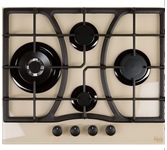 Размеры 61х51х9,7см.Закаленное стекло, бежевый, чугунная решетка, автоматический розжиг, газ-контроль, 4 газовые горелки, WOK-конфорка, ширина варочной поверхности 60 см, Турция.