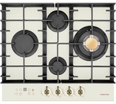 Панель конфорок: Закаленное стекло, Чугунные решетки: Усиленные, Тип электроподжига: Автоматический, Газ-контроль конфорок: Да, Таймер: Индивидуальный, с отключением, Ширина (см): 58.4, Цвет бежевый