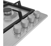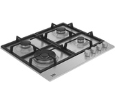 Газовая варочная поверхность (газ на металле), 4 зоны, одна зона с двойным уровнем пламени; автоподжиг, газ-контроль, чугунные решетки, цвет: нержавеющая сталь