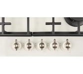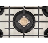 Встраиваемая газовая панель с металлической поверхностью и 4 конфорками разной мощности. Варочная поверхность оснащена системой газ-контроля, которая прекращает подачу газа в конфорки, если пламя случайно гаснет. В ручки регулировки степени нагрева встроен автоматический электроподжиг конфорок для удобного использования газовой панели. В комплекте с варочной поверхностью идут надежные чугунные решетки и подставка для турки. Общие данные: Габариты: 4.6x58x51.5 см Габариты ниши для встраивания: -x56x49 см Рабочий стол: нержавеющая сталь Количество конфорок: 4 Мощность конфорок: Передняя левая: 5000 Вт Задняя левая: 1000 Вт Передняя правая: 1750 Вт Задняя правая: 1750 Вт Встроенный в ручки электроподжиг Газ-контроль Управление: Поворотные переключатели Расположение панели управления: Фронтальное Дополнительная информация: Решетки: Чугун Высокоэффективные конфорки Адаптер под кофейник Наличие провода: 1.4 м Наличие вилки Тип газа: G 20 / G 30 Давление газа: 20 / 30 Номинальная мощность: 9500 Вт Напряжение: 230 В