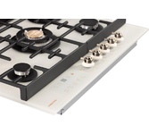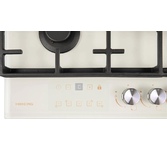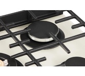 (ВхШхГ)13.6 х 60 х 52см.Материал варочной поверхности закаленное стекло Цвет фурнитуры белый Держатели для посуды чугунные Количество держателей для посуды 2.Управление механическое Переключатели поворотные ФУНКЦИИ Электроподжиг автоматический Газ-контроль Вид и давление газа природный газ G20/20