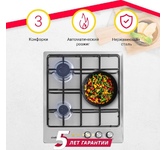 • Независимая газовая варочная поверхность 45 см. • Кол-во конфорок – 3 — 1 мощная (2900 Вт) — 1 стандартная (1700 Вт) — 1 экономичная (950 Вт) • Автоматический розжиг • Цвет корпуса – черная эмаль Комплектация: эмалированные решётки, жиклёры для баллонного газа