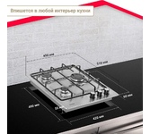 • Независимая газовая варочная поверхность 45 см. — 1 большаяя конфорка 2900 Вт. — 1 стандартная конфорка 1700 Вт. — 1 экономичная конфорка 950 Вт. • Автоматический розжиг • Цвет корпуса – нержавеющая сталь Комплектация: LAMA решётки, жиклёры для баллонного газа