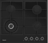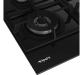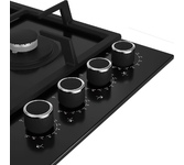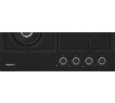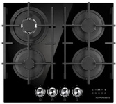 Газовая варочная поверхность (газ на стекле) 4 зоны, Step Flame, одна зона с двойным уровнем пламени, автоподжиг, газ-контроль, чугунные решетки, цвет: черный