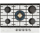 Встраиваемая газовая варочная поверхность HIBERG VM 7155 W из закаленного стекла в белом цвете, оснащена 5 конфорками и функциями: автоматический «электророзжиг», «газ-контроль» и сенсорный таймер отключения. В комплект варочной поверхности входит дополнительный набор ручек регуляторов в ретро-стиле. Рабочая поверхность выполнена из закаленного стекла - прочного и долговечного материала, на ней располагаются 5 конфорок разных по диаметру и мощности огня. WOK конфорка мощностью 3,4 кВт позволяет ускорить закипание воды и использовать интенсивную скорость прожарки. Мощность любой горелки можно регулировать с помощью поворотных переключателей. Для удобства пользования варочной панелью в переключатели встроен «электророзжиг», который позволит одним нажатием руки легко включить нужную конфорку без использования спичек. В варочной поверхности эффективно продумана система безопасности при утечке газа. В случае пролива жидкости на варочную панель или затухания пламени от сквозняка, в конфорке срабатывает функция газ-