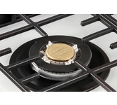 Газовая варочная панель Haier HHQ-G64CTQB воплощает современный дизайн с акцентом на эргономику и стиль. Основание из черного закаленного стекла в сочетании с чугунными решетками и металлическими регуляторами создает лаконичный эстетичный образ. Увеличенное расстояние между конфорками позволяет одновременно готовить несколько блюд, сохраняя чистоту и порядок на рабочей поверхности. Для использования посуды малого диаметра и более равномерного нагрева в комплект входит дополнительная подставка. Помимо стандартных конфорок разного размера, панель оборудована мощной трехконтурной горелкой (4 кВт), идеальной для объемных кастрюль и сковород. Эта ВОК-конфорка расположена на переднем крае панели, с противоположной стороны от регуляторов. Благодаря функции Easy-Start розжиг каждой конфорки происходит мгновенно. Это исключает неудобную необходимость удерживать регулятор нажатым, характерную для обычных плит. Точная 9-уровневая регулировка подачи газа обеспечивает оптимальный контроль над процессом приготовления. Сист