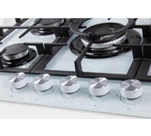 Тип панели: газовая. Установка рабочей поверхности: независимая. Материал поверхности: закаленное стекло. Материал решетки: чугун. Заводская настройка на газ: 20. Суммарная мощность газовых конфорок: 11.6. Цвет: стекло белое. Конфорка ВОК: есть. Вес (нетто): 20.42. Газ-контроль: есть. Габариты упаковки (ед) ДхШхВ: 0.78x0.59x0.151. Вес упаковки (ед): 21.27. Страна производства: Турция. Настроенный вид газа: природный (метан). Общее количество конфорок: 5. Расположение панели управления: спереди. Управление: механическое. Электроподжиг: в ручке (автоматический). Гарантия: 36 мес.. Левая ближняя конфорка: газовая, мощность 1.6 кВт, одноконтурная. Левая дальняя конфорка: газовая, мощность 1.6 кВт, одноконтурная. Средняя конфорка: газовая, мощность 4.8 кВт, двухконтурная. Размеры (ШхГхВ): 710х510х60 мм. Размеры ниши для встраивания (ШхГхВ): 560х485. Правая ближняя конфорка: газовая, мощность 1 кВт, одноконтурная. Правая дальняя конфорка: газовая, мощность 2.6 кВт, одноконтурная. Тип переключателей: поворотные. Осо