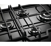 Черная встраиваемая газовая варочная панель с 5 конфорками разного диаметра, чугунными решетками и черной стеклянной поверхностью, которую легко чистить после каждого использования. Газовая поверхность оснащена автоматическим электроподжигом конфорок, встроенным в ручки регулировки степени нагрева, и системой газ-контроля, которая защищает от случайной утечки газа. Общие данные: Габариты: 5.1x75x52.4 см Габариты ниши для встраивания: -x56x49 см Рабочий стол: закаленное стекло Количество конфорок: 5 Мощность конфорок: Передняя левая: 1000 Вт Задняя левая: 1750 Вт Передняя правая: 2900 Вт Задняя правая: 2900 Вт Центральная: 5000 Вт Встроенный в ручки электроподжиг Газ-контроль Управление: Поворотные переключатели Расположение панели управления: Фронтальное Precize Flame: Точная регулировка пламени благодаря ступенчатой системе ручек управления. Дополнительная информация: Решетки: Чугун Высокоэффективные конфорки Адаптер под кофейник Наличие провода: 1.4 м Наличие вилки Тип газа: G 20 / G 30 Давление газа: 20 /