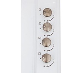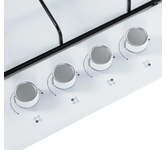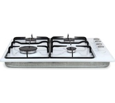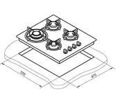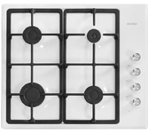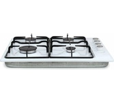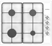 (ВхШхГ) 8х59х51см. Цвет белый.Независимая встраиваемая газовая поверхность. 4 газ. конфорки. Переключатели поворотные. Электроподжиг автоматический. Фиксированное положение "Малое пламя". Решетки: стальные. Материал панели нерж. сталь. Расположение панели сбоку.