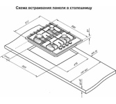 Тип панели: газовая; Размеры (ШхГхВ): 30х52х4 см; Размеры ниши для встраивания(ШхГхВ): 27х49; Расположение панели управления: спереди; Тип переключателей: поворотные; Материал поверхности: закаленное стекло; Материал решетки: чугун; Цвет: черный; Особенности: электроподжиг в ручке (автоматический); Установка рабочей поверхности: независимая; Настроенный вид газа: природный (метан); Заводская настройка на газ: 20 мбар; Подходит для магистрального и баллонного газа