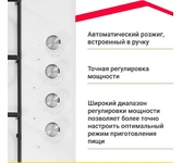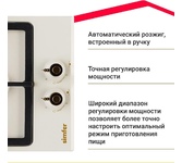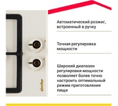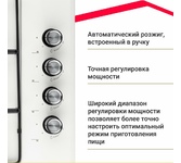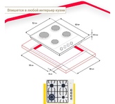 • Независимая газовая варочная поверхность 60 см. • Кол-во конфорок – 4 1 х конфорка повышенной мощности 3000 Вт. 2 х стандартные конфорки 1750 Вт. 1 x экономичная конфорка 1000 Вт. • Автоматический розжиг • Боковая панель управления Комплектация: составн