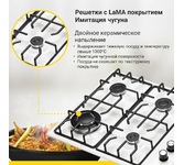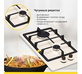 Газовая варочная панель Simfer H60Q41W571 - модель, которая благодаря своим компактным размерам органично впишется в интерьер вашей кухни и сделает ежедневный процесс приготовления еды комфортным. 1 х большая WOK-конфорка 3000 Вт 2 х стандартная конфорка 1750 Вт 1 x экономичная конфорка 1000 Вт Материал решеток (Новинка!): LAMA (имитация под чугун) - матовая эмалированная сталь.