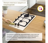 Газовая варочная панель MAUNFELD Комбинированная варочная панель EGHE.43.3STS-EB, 3 конфорки, нержавеющая сталь, черный