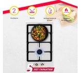 • Независимая газовая варочная поверхность 30 см. • Кол-во конфорок – 2 1 х конфорка повышенной мощности 3000 Вт. 1 x экономичная конфорка 1000 Вт. • Автоматический розжиг • Газ контроль • Фронтальная панель управления • Комплектация: цельная чугунная решётка, жиклёры для баллонного газа • Цвет – белый