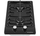 Тип: Газовая варочная панель; Управление: Механическое, Электроподжиг; Цвет: Черный; Материал решеток: Чугунные; Мощность: 4000 Вт; Количество конфорок: 2 конфорки; Газ-контроль; Подходит для магистрального и баллонного газа; Размер устройства (ВхШхГ): 4×30×52 см; Размер для встраивания (ВхШхГ): 27 х 49 см; Длина силового кабеля: 123 см; Комплектация: Набор жиклёров для конверсии газа
