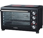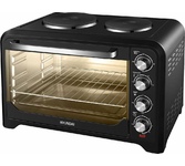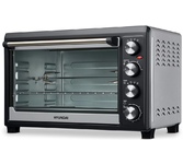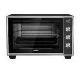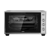 2000 Вт, объем камеры 45 л, серебристый корпус и часть фронтальной поверхности, панель управления черного цвета, декоративные элементы из нержавеющей стали и хрома, таймер на 120 мин + функция "работа без таймера", 12 режимов работы (верхний нагрев, нижний нагрев, одновременный верхний и нижний нагрев + эти же режимы с конвекцией + эти же режимы только с вертелом + эти же режимы с вертелом и конвекцией), температура нагрева до 250 C, Напряжение питания 230 В; Конвекция и Вертел, Частота 50 Гц, световой индикатор, Механический тип управления, ножки с нескользящей опорой, внутренняя подсветка, современный дизайн, Аксессуары: эмалированный прямоугольный противень, решетка гриль, ухват для снятия противня, вертел, приспособление для снятия вертела, поддон для сбора крошек и масла, Размеры без упаковки (см): 55,3x40x36 и Вес нетто без упаковки (кг): 8,9