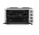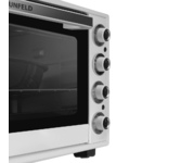 Мини-печь MAUNFELD CEMOA.456.RBG — это компактный кухонный прибор, предназначенный для приготовления различных блюд. Модель выполнена в черном цвете, имеет фурнитуру под бронзу. Такой дизайн сделает акцент в вашей кухне, или ином помещении, и придаст индивидуальность. Габариты товара 30×60×40 см, поэтому вам не стоит беспокоиться о том, что он займет много места в помещении. Управление прибором включает в себя поворотные переключатели, которые сможет освоить абсолютно каждый. Такой тип управления — это не только достижение результата легким касанием руки. Это надежность, т. к. переключатели укрывают электронику от внешних загрязнений. Несмотря на размеры модели, у мини-печи Маунфелд Кемоа.456.RBG огромный функционал. С помощью настроек вы можете включить любой режим, который необходим для приготовления любого блюда. Автоотключение позволит вам не переживать о безопасности. Если произойдет скачек электроэнергии или произойдет перегрев, оборудование выключится самостоятельно. Это отвечает за безопа
