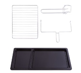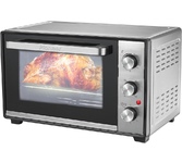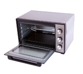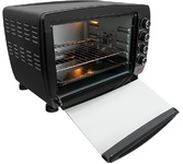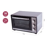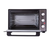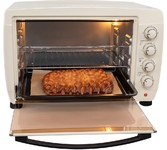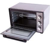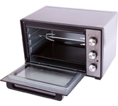Печь электрическая, объем камеры печи 38 литров, механическое управление, двойное жаропрочное стекло, потребляемая мощность 1600 Вт, температура нагрева печи 100-250 *С, функция конвекции, электромеханический вертел, 6 режимов нагрева, таймер до 60 минут, индикация включения, сигнал окончания приготовления, внутренняя подсветка, металлическая решетка, плоский противень 2 штуки, вертел, держатель для вертела, ухват