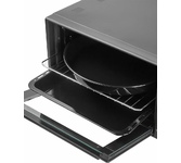 Многофункциональная печь с аэрогрилем и конвекцией, объем: 35 л, потребляемая мощность: 2000 Вт, цветной дисплей, цифровое управление, конвекция, аэрогриль, электрический гриль, температура: 35-230°С, таймер отключения: от 1 мин. до 72 часов, сигнал окончания приготовления, внутренняя подсветка. Комплектация:, металлическая решетка, плоский противень, круглая форма для пиццы, насадка для шашлыка/кебаба, ухват для противня, вертел, ухват для вертела, лоток для крошек, воздушная корзина, корзина для жарки