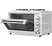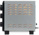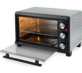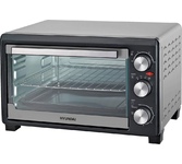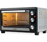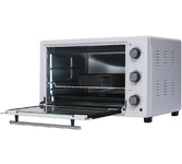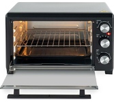 1500 Вт, объем камеры 23 л, серебристый корпус и часть фронтальной поверхности, панель управления черного цвета, декоративные элементы из нержавеющей стали и хрома, таймер на 120 мин + функция "работа без таймера", температура нагрева до 250 C, 3 режима работы (верхний нагрев, нижний нагрев, одновременный верхний и нижний нагрев), Напряжение питания 230 В; Частота 50 Гц, световой индикатор, Механический тип управления, ножки с нескользящей опорой, внутренняя подсветка, современный дизайн, Аксессуары: эмалированный прямоугольный противень, решетка гриль, ухват для снятия противня, поддон для сбора крошек и масла, Размеры без упаковки (см): 46,7x35x29 и Вес нетто без упаковки (кг): 5,8