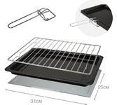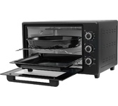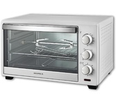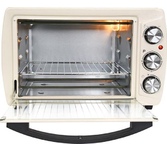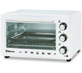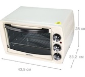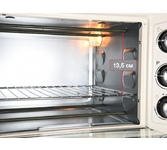 Объем 30л, мощность духовки 1500Вт, механическое управление, 3 режима работы духовки (верх, низ, верх+низ), таймер на 60 минут со звонком, регулировка температуры духовки, комплектация - металлическая решетка, противень и ухват.