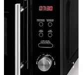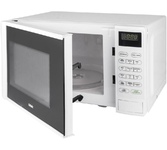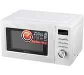 Микроволновая печь, внутренний объем: 20 литров, выходная мощность: 700 Вт, входная мощность: 1100 Вт, мощность гриля: 900 Вт, тип управления: цифровой, электронные часы, диаметр поворотного стола: 245 мм, количество уровней мощности: 10, программы автоматического приготовления: 6, размораживание по весу и времени, таймер: до 99мин.99 сек., блокировка от детей, тип открывания дверцы: ручка, сигнал окончания приготовления