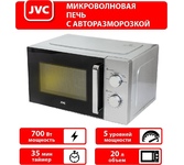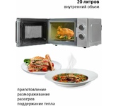 Печь микроволновая, объем 20л, выходная мощность 700 Вт, тип управления: механический, диаметр поворотного стола: 255 мм, количество уровней мощности: 5, автоматическое размораживание, таймер: 35 минут, тип открывания дверцы: ручка, сигнал окончания приготовления, цвет: серебро