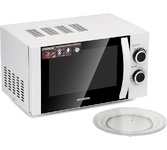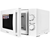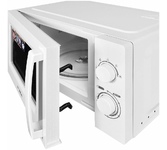 Объем 20 л; Мощность 700 Вт; 6 уровней мощности; Максимальное время приготовления 30 мин; Поворотный стол 24,5 см; Функция разморозки; Сигнал об окончании готовки; Механизм открывания дверцы – кнопка; Тип управления: механический; Цвет: белый с черными ручками и хромироаными вставками