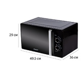 Микроволновая печь, внутренний объем: 23 литра, выходная мощность печи: 800 Вт, тип управления: механический, диаметр поворотного стола: 270 мм, количество уровней мощности: 6 ,автоматическое размораживание ,таймер: 30 минут, тип открывания дверцы: ручка ,сигнал окончания приготовления, зеркальное стекло дверцы, цвет: черный