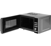 Объем 20 л; Мощность 700 Вт; 5 уровней мощности; Максимальное время приготовления 35 мин; Поворотный стол 25,5 см; Функция разморозки; Сигнал об окончании готовки; Механизм открывания дверцы – ручка; Тип управления: механический; Цвет: черный, размер печи нетто 440x346x259 мм