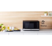 Тип установки Отдельностоящая Объем 25 л Мощность микроволн 900 Вт Тип управления электронное Внутреннее покрытие камеры нержавеющая сталь Внутреннее освещение Да Количество ступеней регулировки мощности 11 шт Управление:быстрый старт, звуковой сигнал окончания приготовления, кнопка +30 секунд, пауза, регулировка мощности Функции:блокировка от детей, задержка пуска, память рецептов, программирование процесса приготовления, самоочистка, таймер Таймер на отключение, максимальное время 95 мин Режимы:автоматический разогрев, автоматическое приготовление, гриль, конвекция Дополнительные режимы:размораживание по весу, режим гриль+конвекция, режим микроволны+гриль, режим микроволны+гриль+конвекция, режим микроволны+конвекция, экспресс-режим приготовления Количество программ 11 Особенности корпуса дисплей, часы Комплектация противень, решетка для гриля Описание: функция аэро-гриль, Стекло дверцы полноразмерное,Напитки Рис Спагетти Картофель Авто подогрев Рыба Выпечка Цыпленок гриль Говядина / Баранина Мясо на шпажках